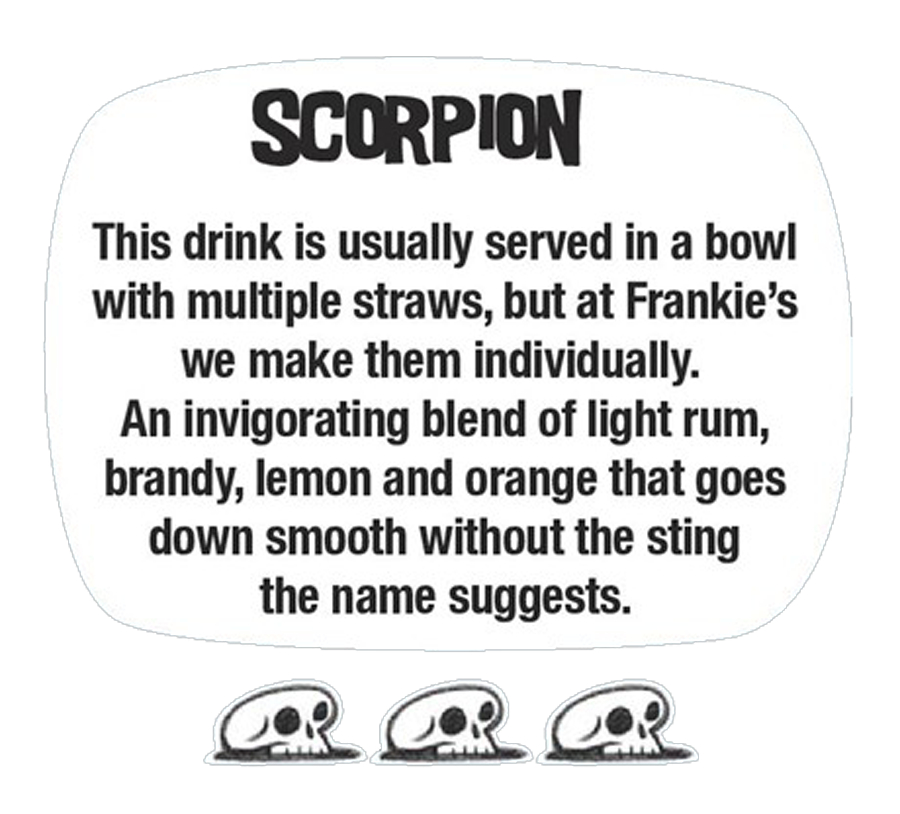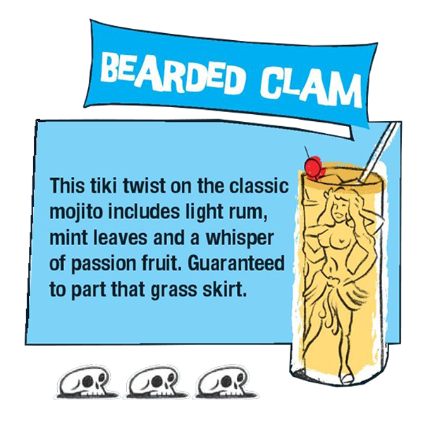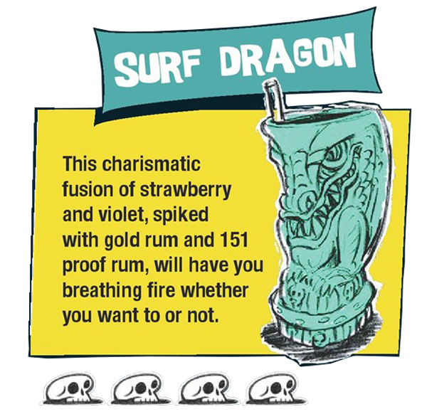 Get boozed-up amid a remarkable combination of traditional island decor and modern lowbrow art while listening to a soundtrack that bounces from exotica and surf to psychobilly and garage.